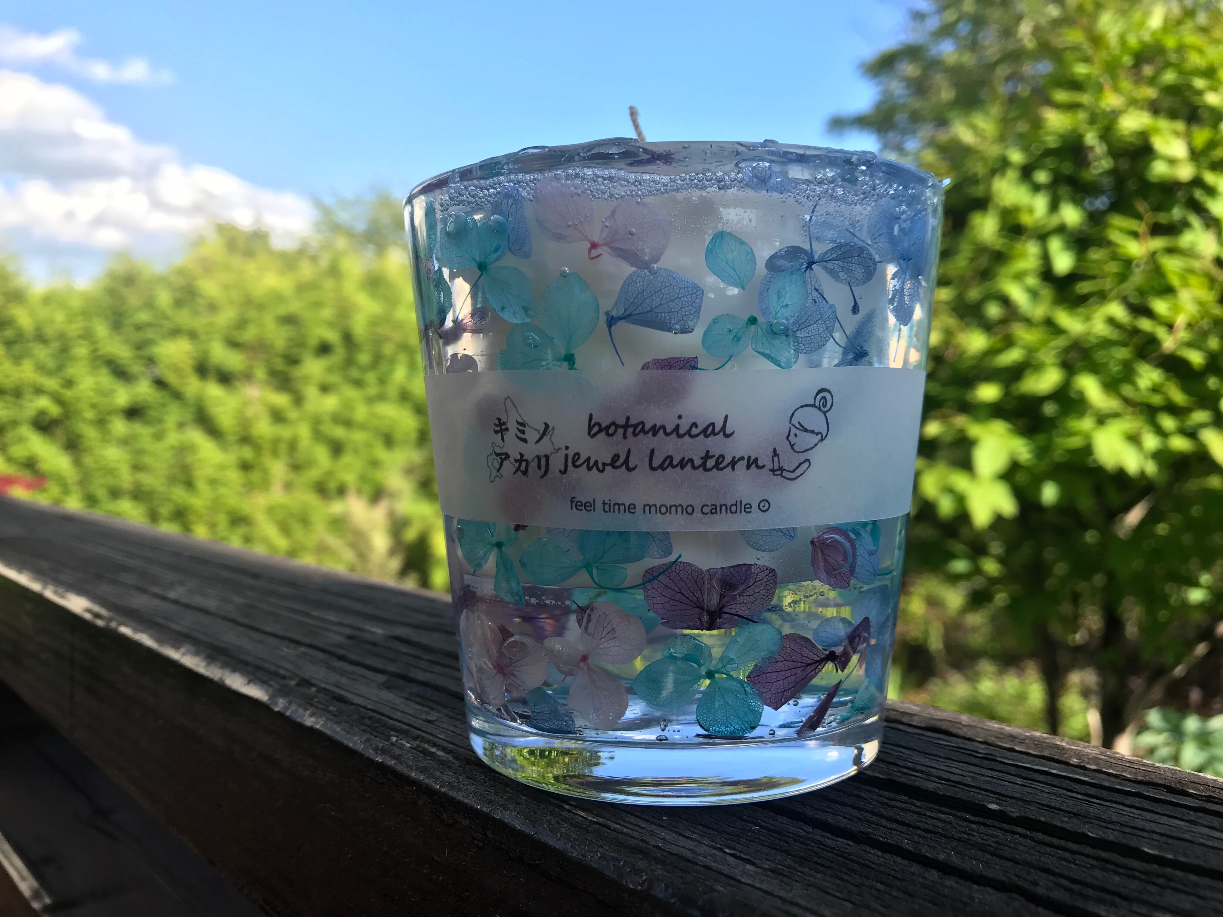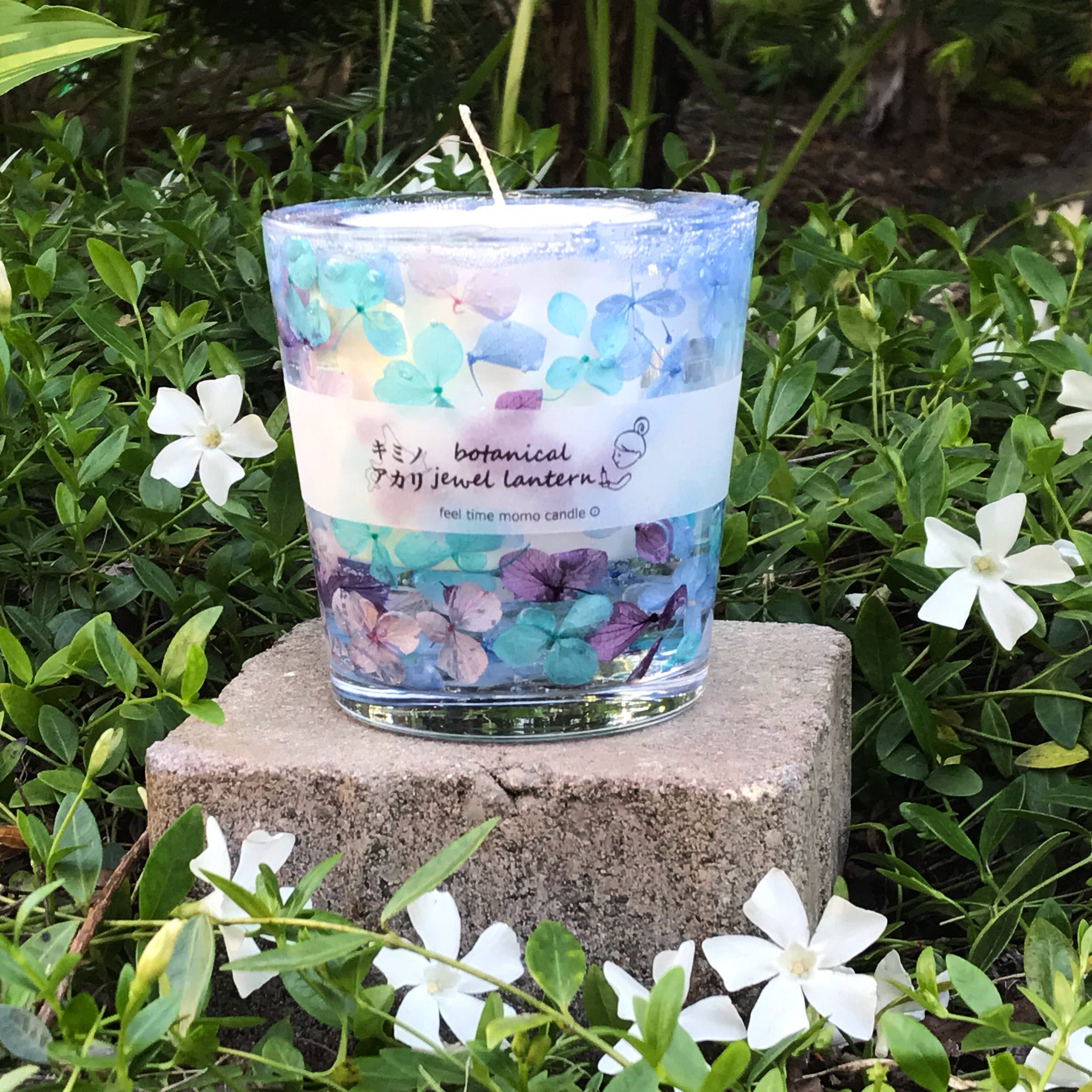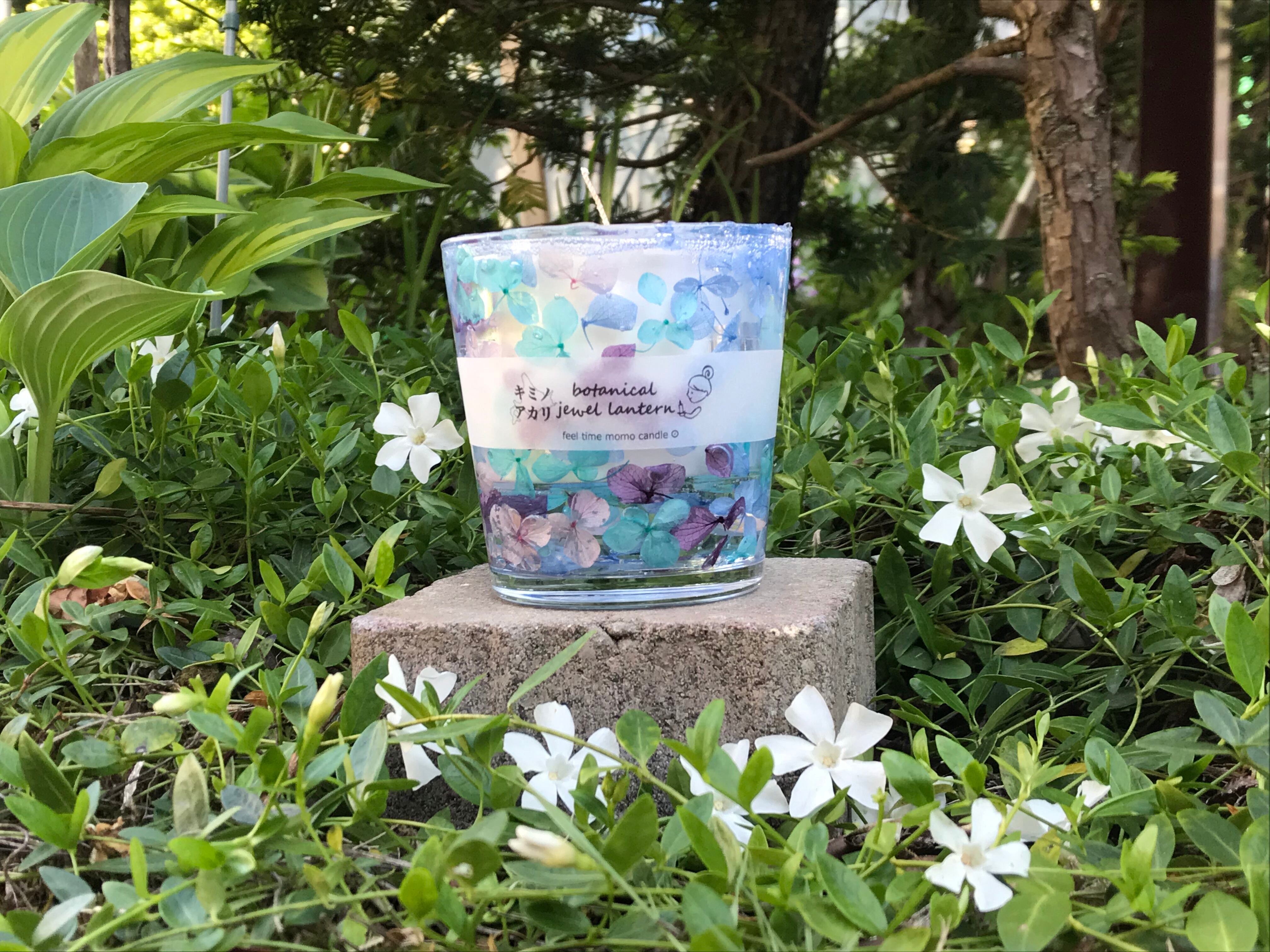 ジュエルランタンは、火を灯し進めていく過程で、徐々にドライフラワーが内側からライトアップされてとても美しいキャンドルです。